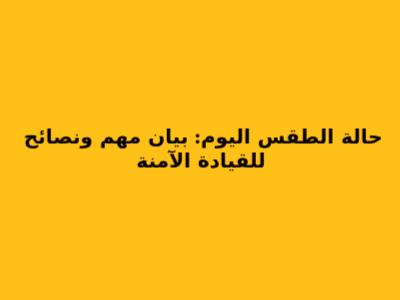 Meta: بيان مهم حول حالة الطقس اليوم ونصائح للقيادة الآمنة. تعرف على آخر التطورات وكيف تحمي نفسك على الطريق.